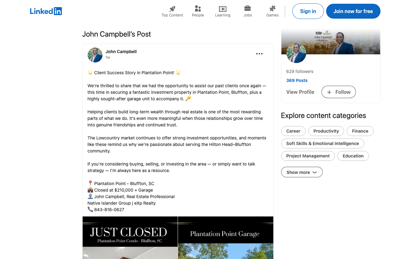 For instance, John Campbell is a property agent whose primary branding goal is to earn customer trust and establish industry authority. So, instead of wasting time on entertainment-oriented platforms, he directs all of his social media energy towards LinkedIn. This platform is an efficient digital space for doing so. On top of that, it prevents the business owner from spreading himself thin across other platforms that don’t have equal credibility weight for his target audience: people who want to see that their property agent is a true professional.